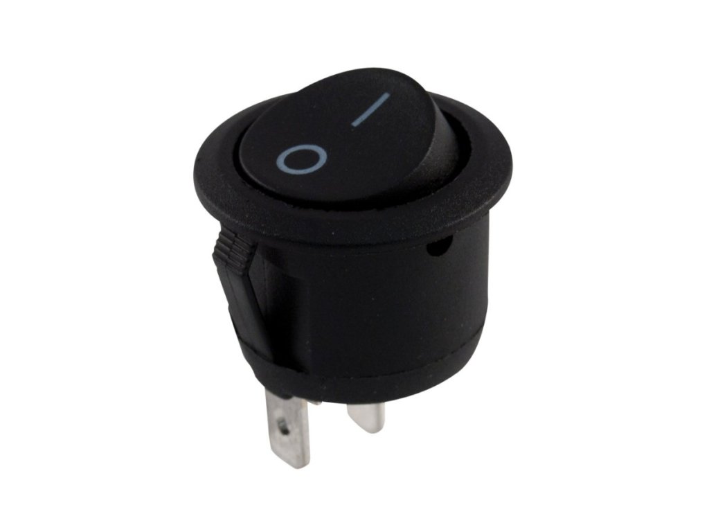 kolébkový spínač do panelu 1pól, O-I, kulatý, černý