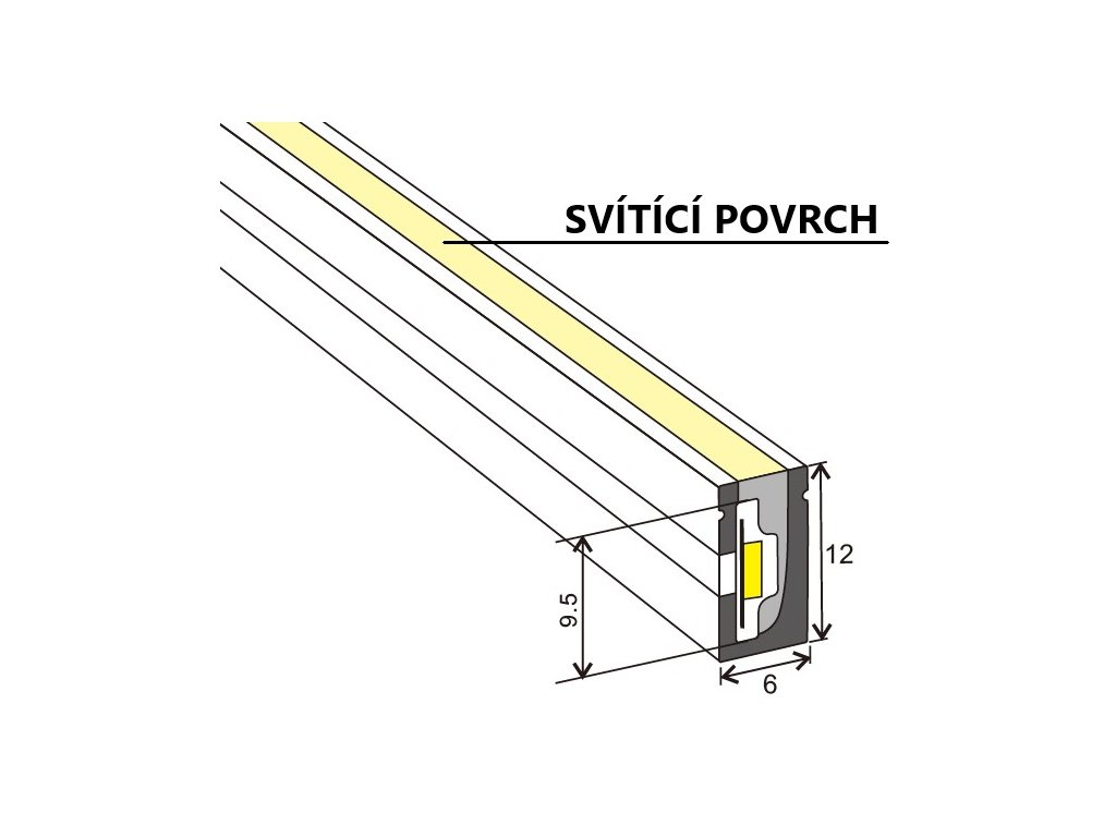 Silikonový profil pro LED pásek se stranovým (bočním) vyzařováním - METRÁŽ.